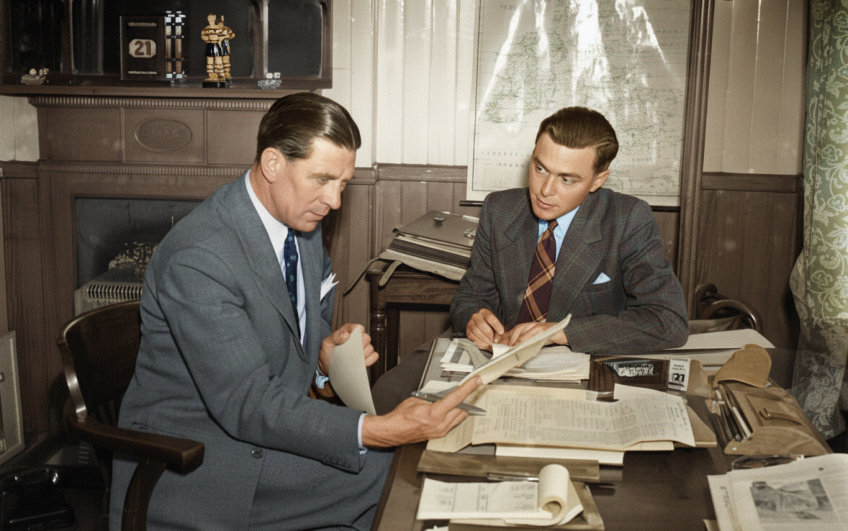 Photo: Ted Drake et Albert Sewell dans les bureaux du stade Stamford Bridge.