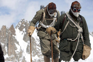 8 juin 1924, Mont Everest dans l’Himalaya. George Mallory et Andrew « Sandy » Irvine quittent le camp VI qui se trouve à 8 170 mètres d’altitude et parte à l’assaut du sommet du toit du monde. Noel Odell le géologue de l’expédition rejoint leur position pour acheminer des affaires. Il aperçoit brièvement ses camarades avec sa lunette. « Mes yeux se sont fixés sur un petit point noir qui se profilait sur une petite crête de neige sous un ressaut rocheux de l’arête ; le point noir bougeait. Un autre point noir est devenu visible et est monté dans la neige rejoindre l’autre sur la crête »